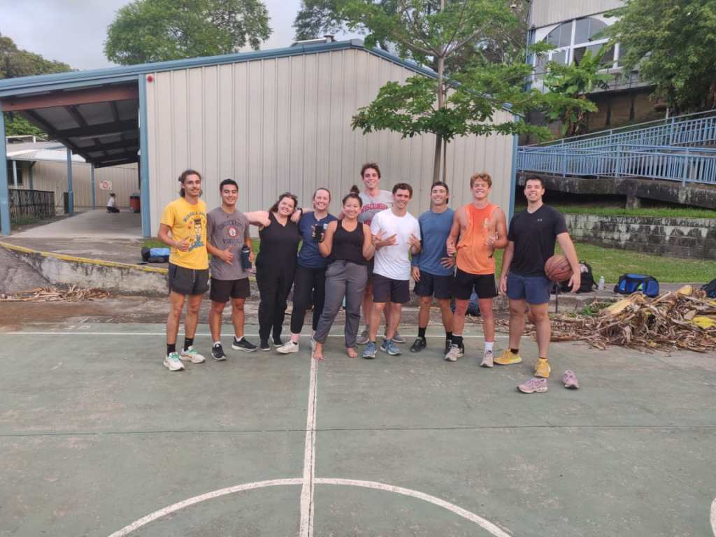 I am a 14 minute walk to the Centro Civico where the daily sessions are held. It takes more like 20 or 25 minutes to walk home because we live on the side of a mountain and its all uphill. My calves are getting stronger and Ive already dropped a belt loop. I will usually play sports after the sessions are over because ill be dripping sweat by the time I get home regardless.