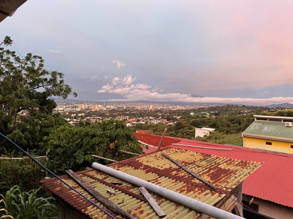 Its fantastic . It is usually between 70-85 degrees Fahrenheit or 21-30 degrees Celsius. I am working on my understanding of Celsius and the metric system. My host parents said that in the San Jose area it doesn’t rain as much. This has been true and i’ve only had one rainy walk home so far. That being said the rainy season hasn’t started yet so Ill enjoy the weather while it lasts.